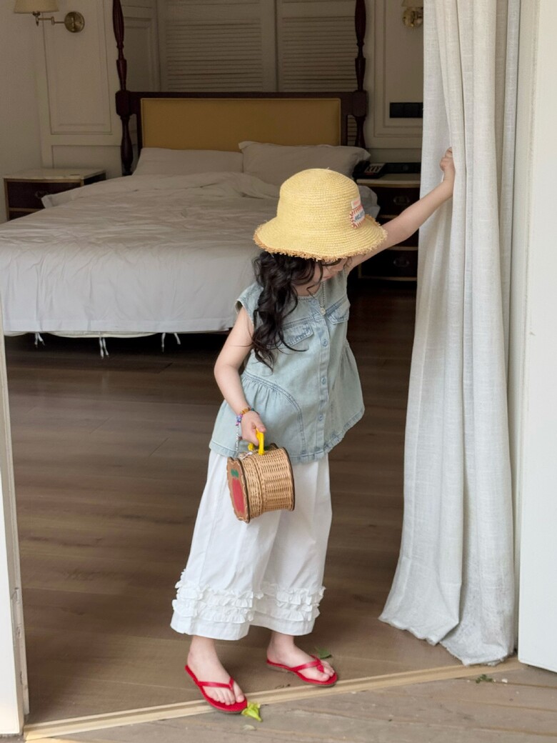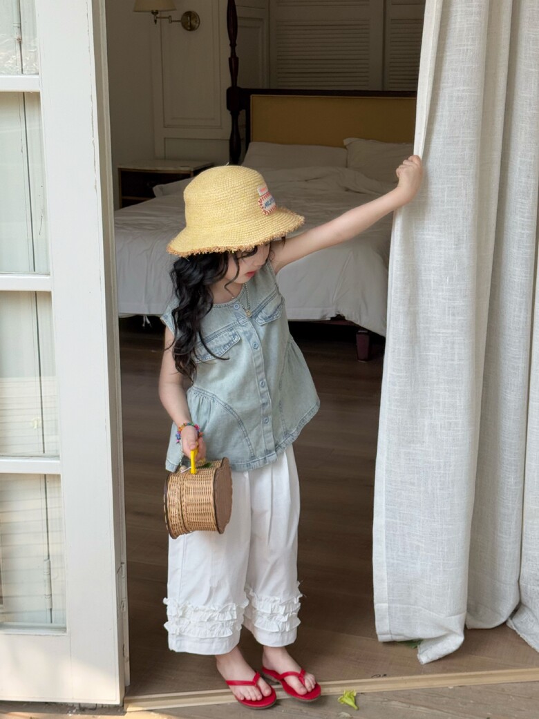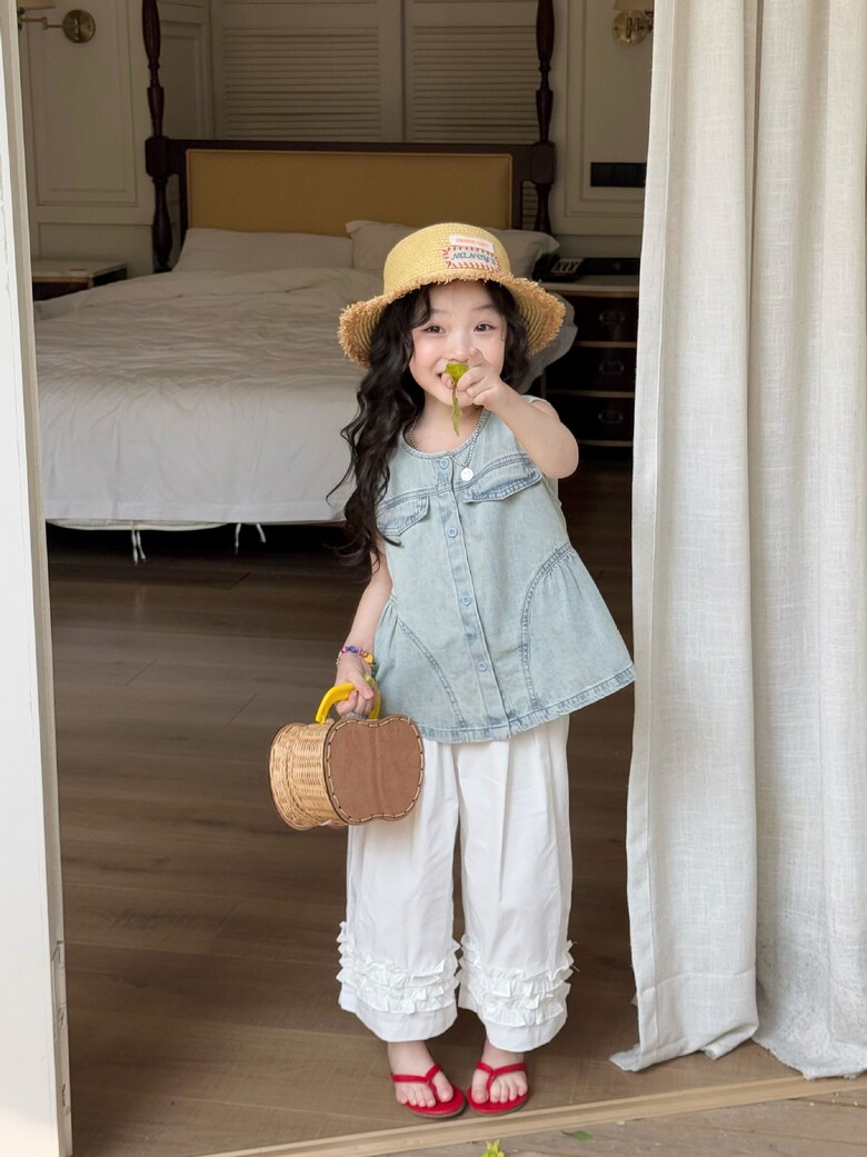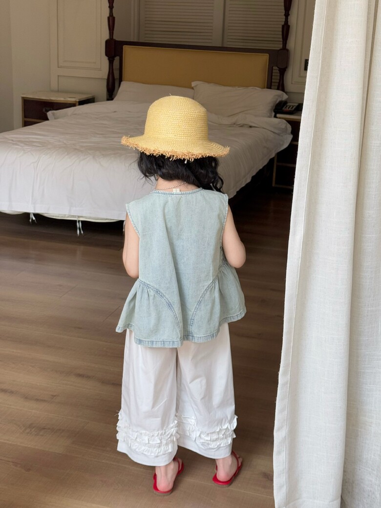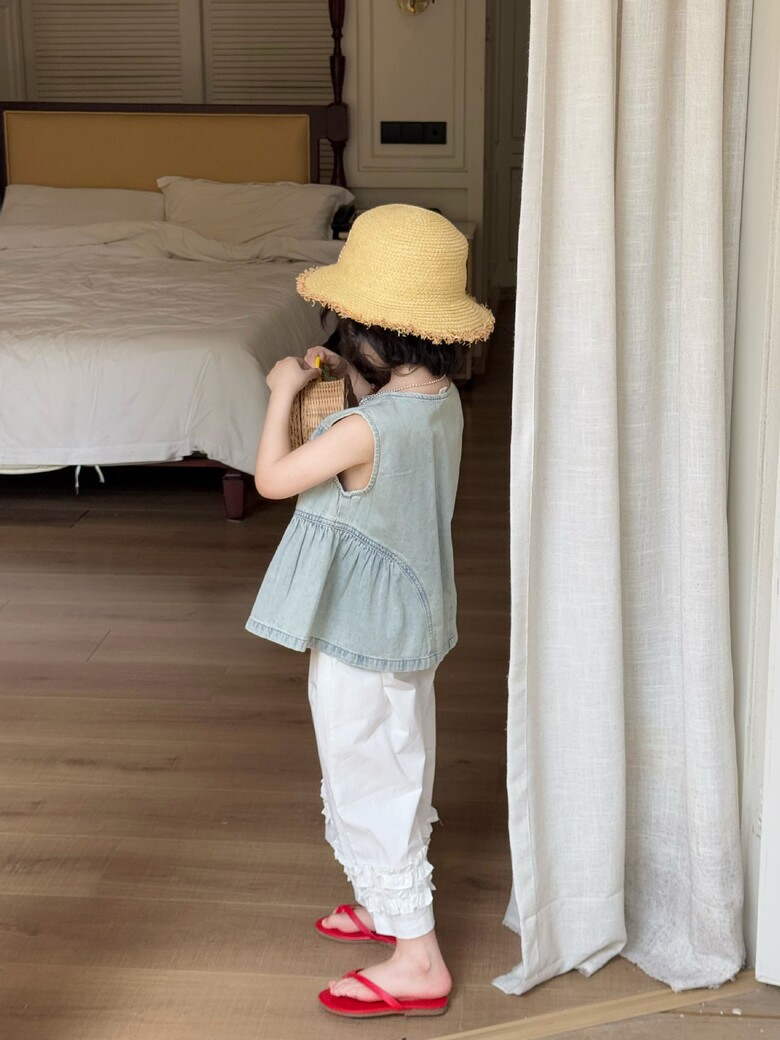 [예약발송] 앨리카 민소매 데님 블라우스 R14378