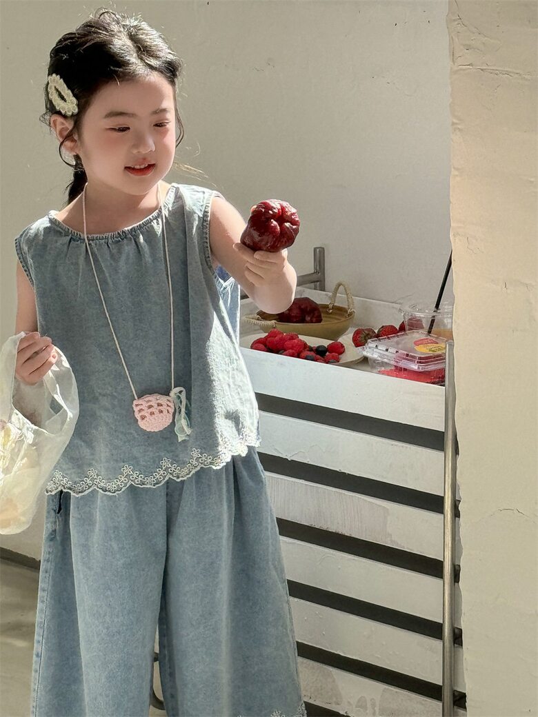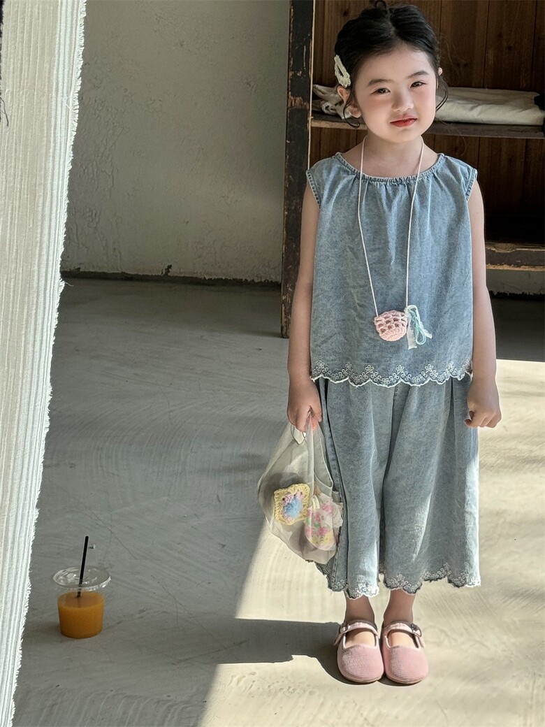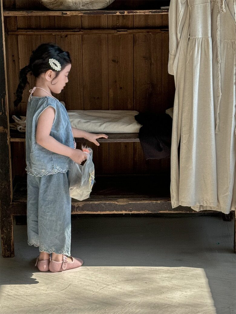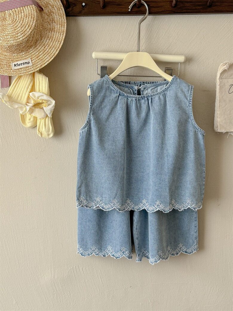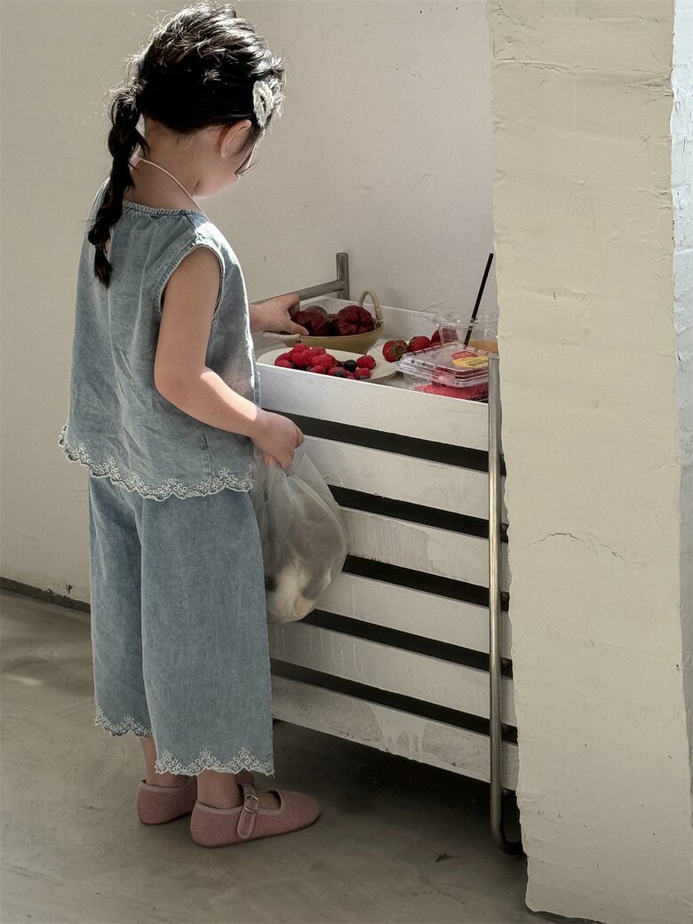 [예약발송] 물결 자수 데님 상하복 세트 R14383