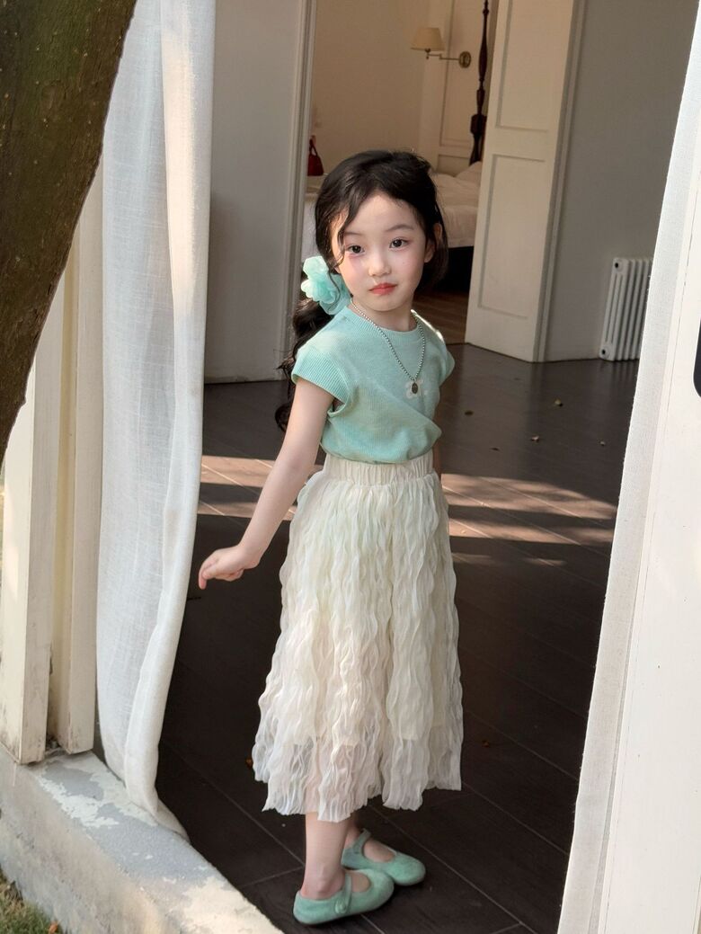 [예약발송] 밀크 플리츠 스커트 상하복 세트 R14375