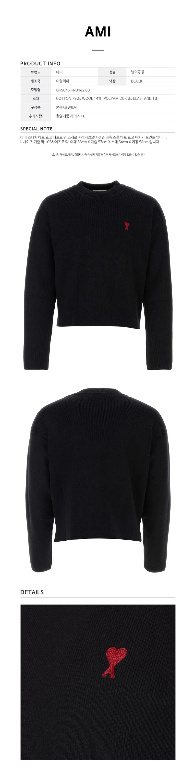 [명품] 아미 하트 로고 니트 스웨터 블랙 UKS046 KN0042 001