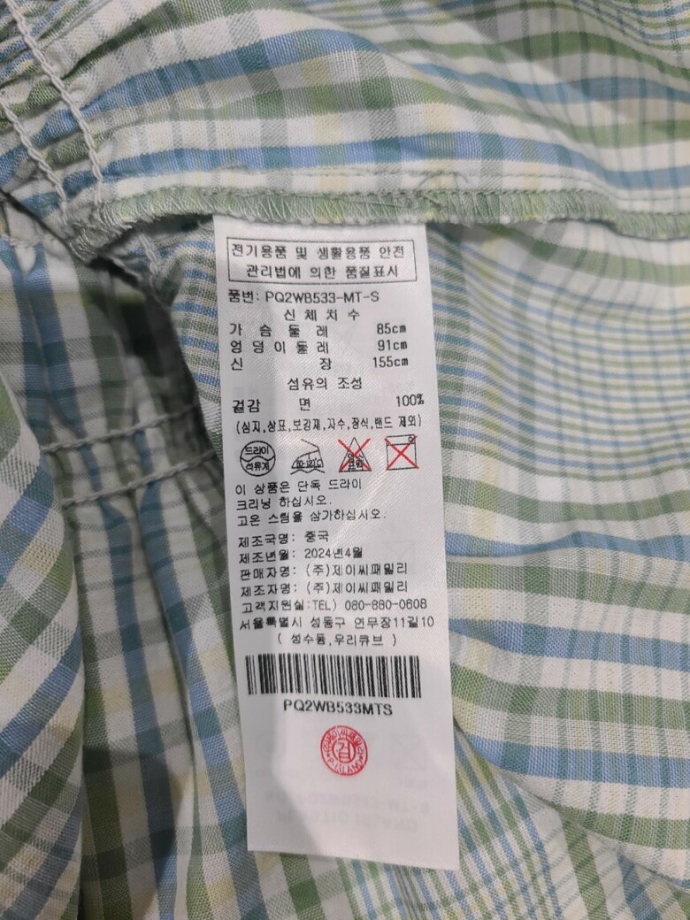 | 1. 제품 소재 (섬유의 조성 또는 혼용률을 백분율로 표시, 기능성인 경우 성적서 또는 허가서) | 면 100% |