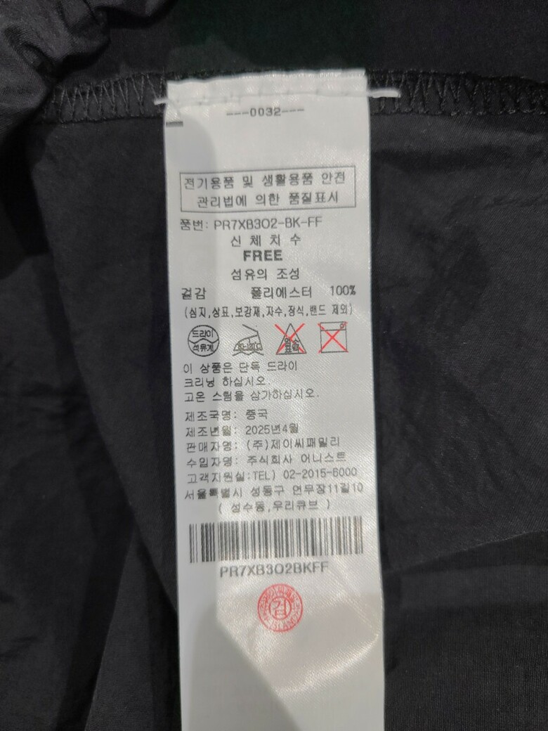 | 1. 제품 소재 (섬유의 조성 또는 혼용률을 백분율로 표시, 기능성인 경우 성적서 또는 허가서) | 폴리에스테르 100% |