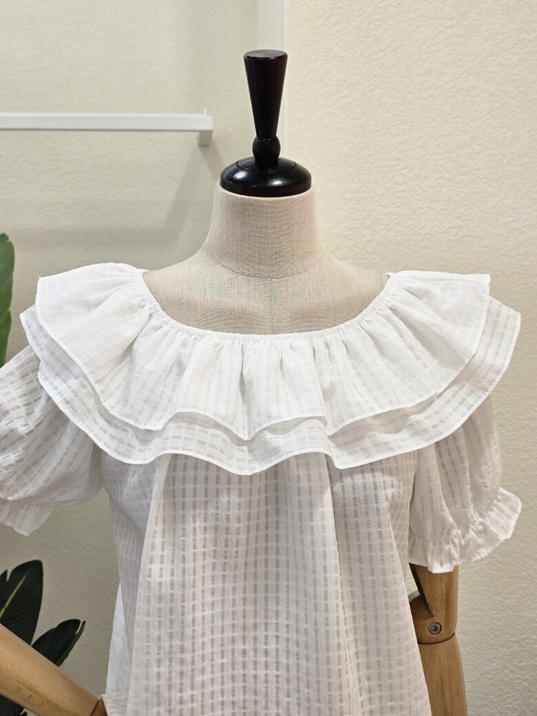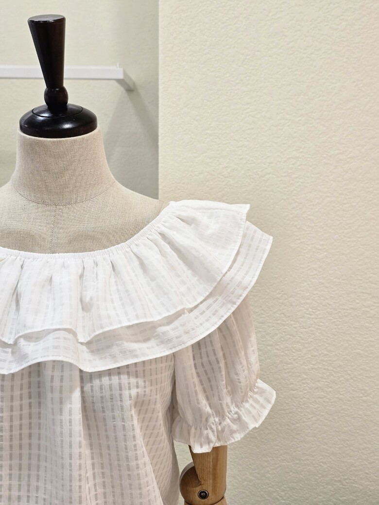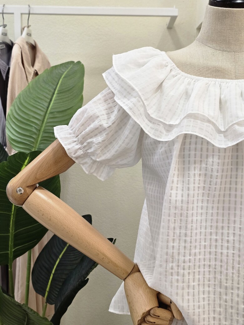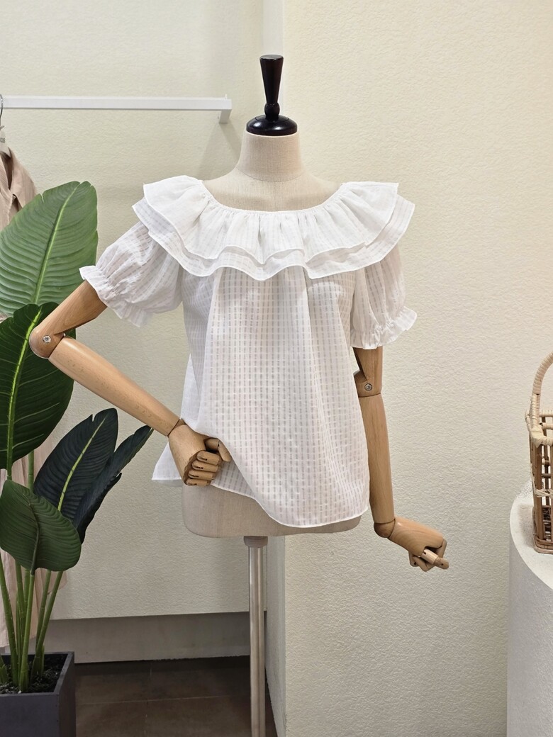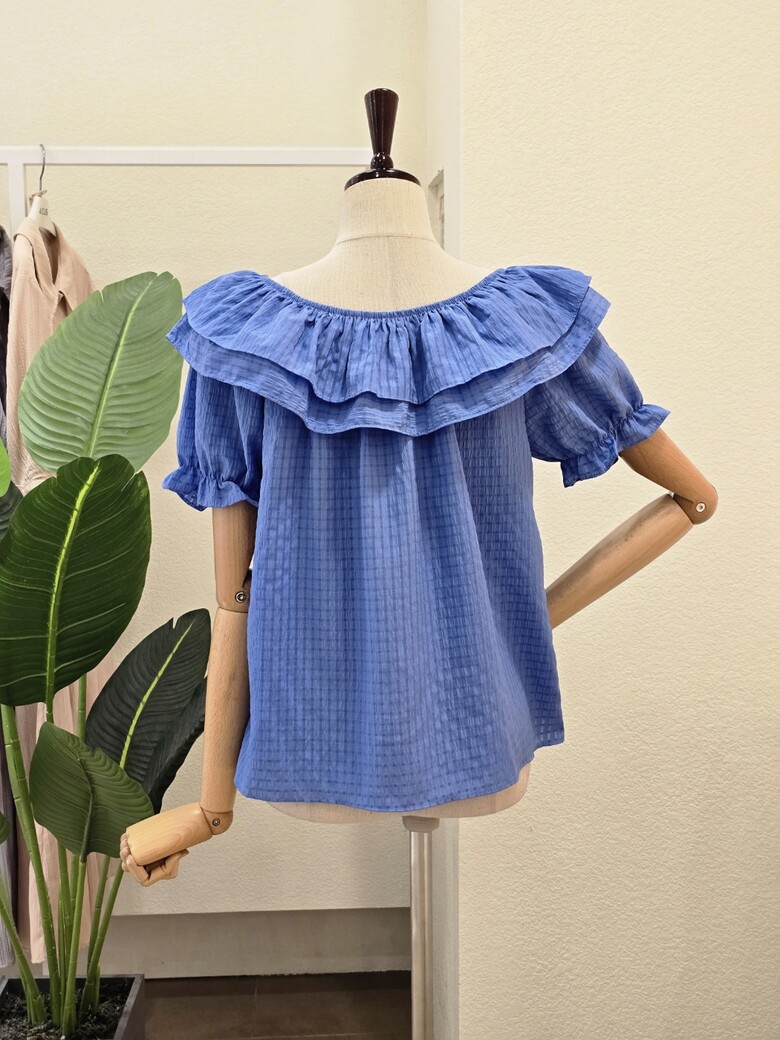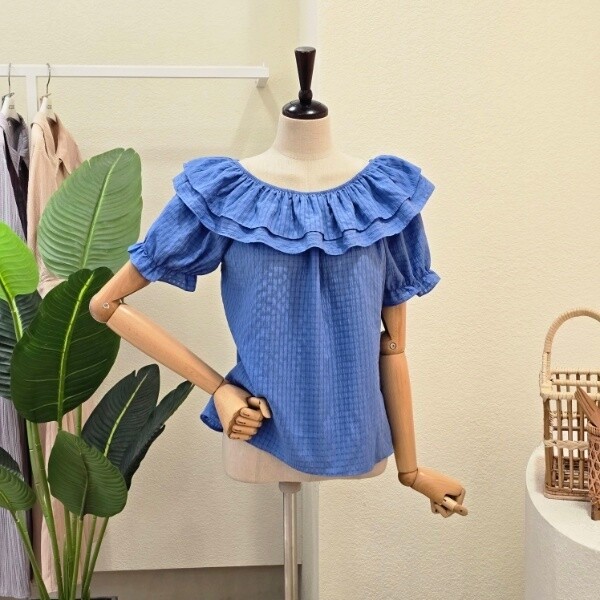 FM5D7BL00892_이중 프릴 오프숄더 블라우스