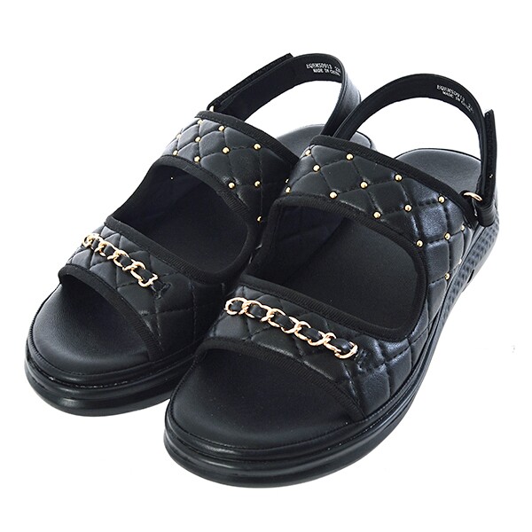 EQEMSD913BK_여성 퀼팅 포인트 스트랩 샌들