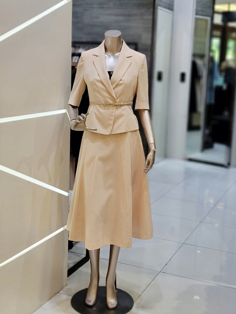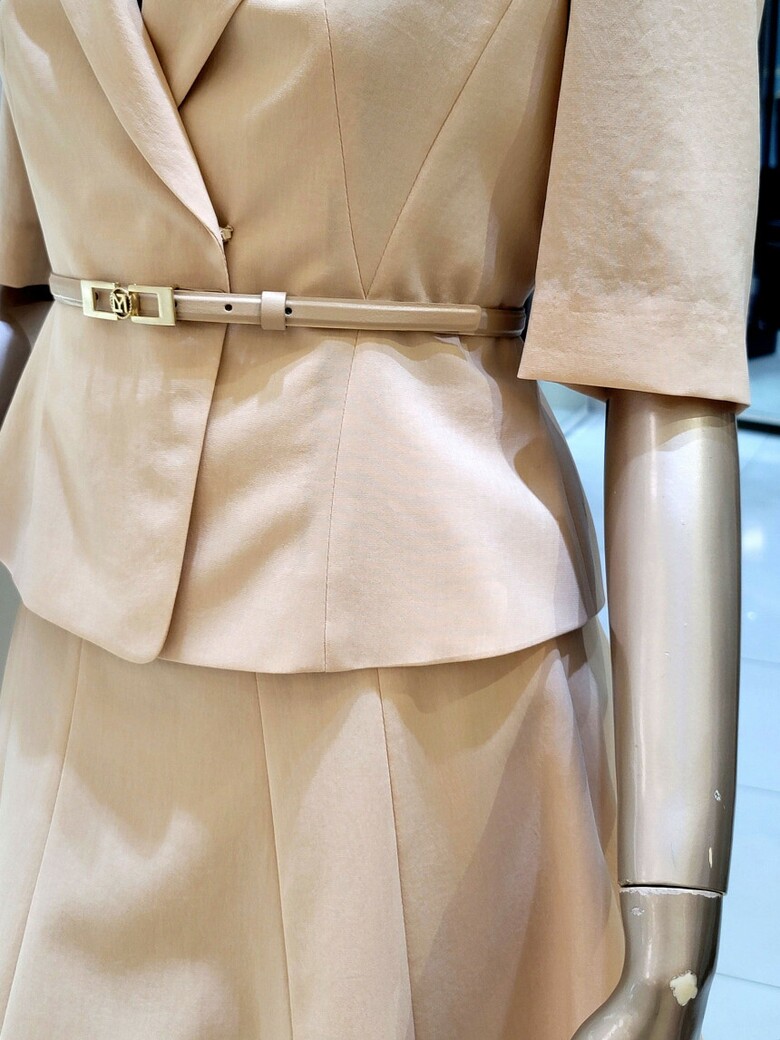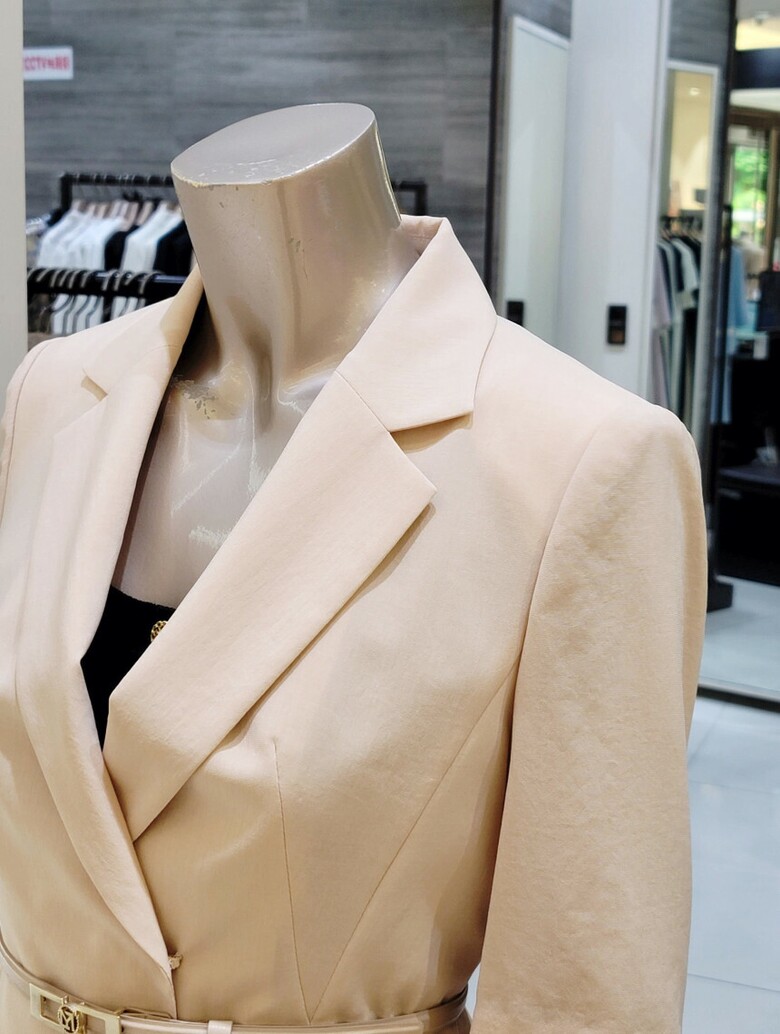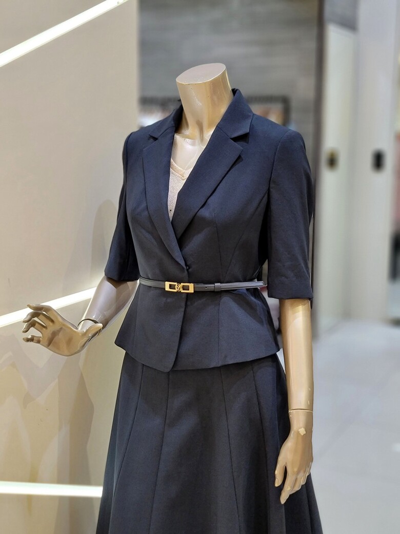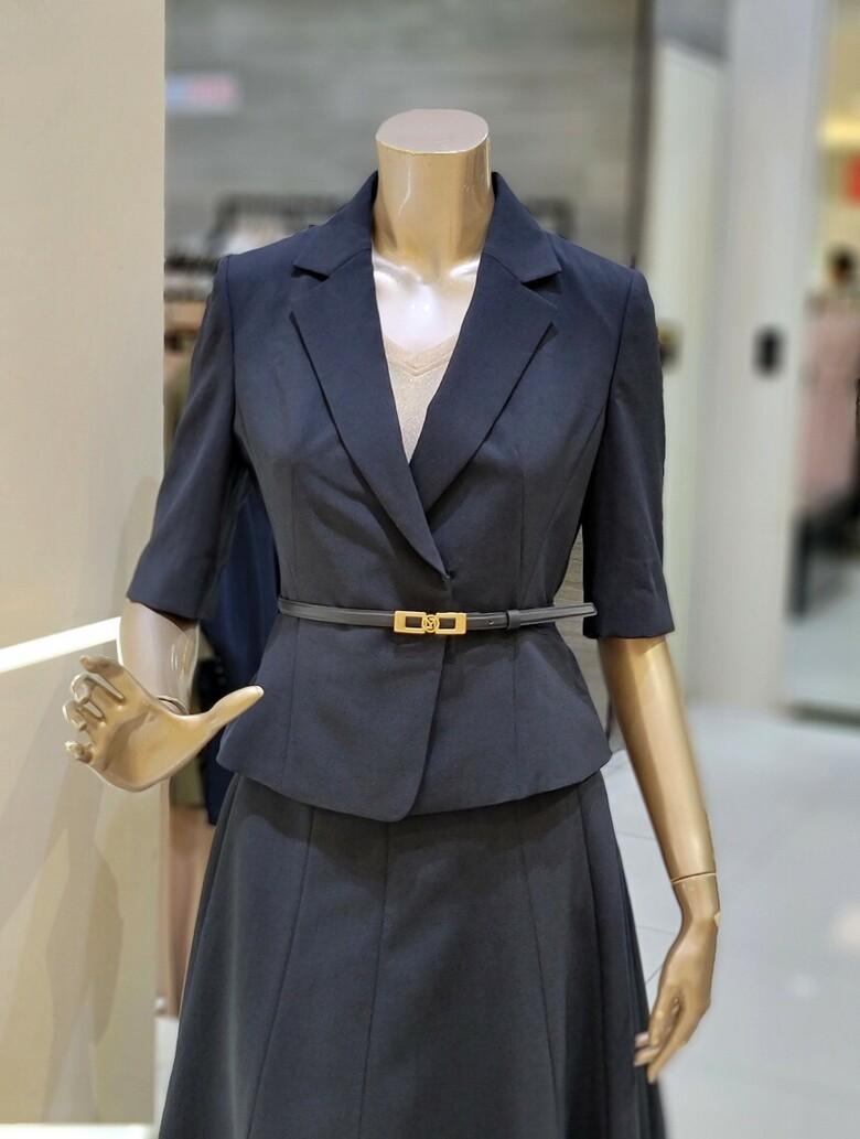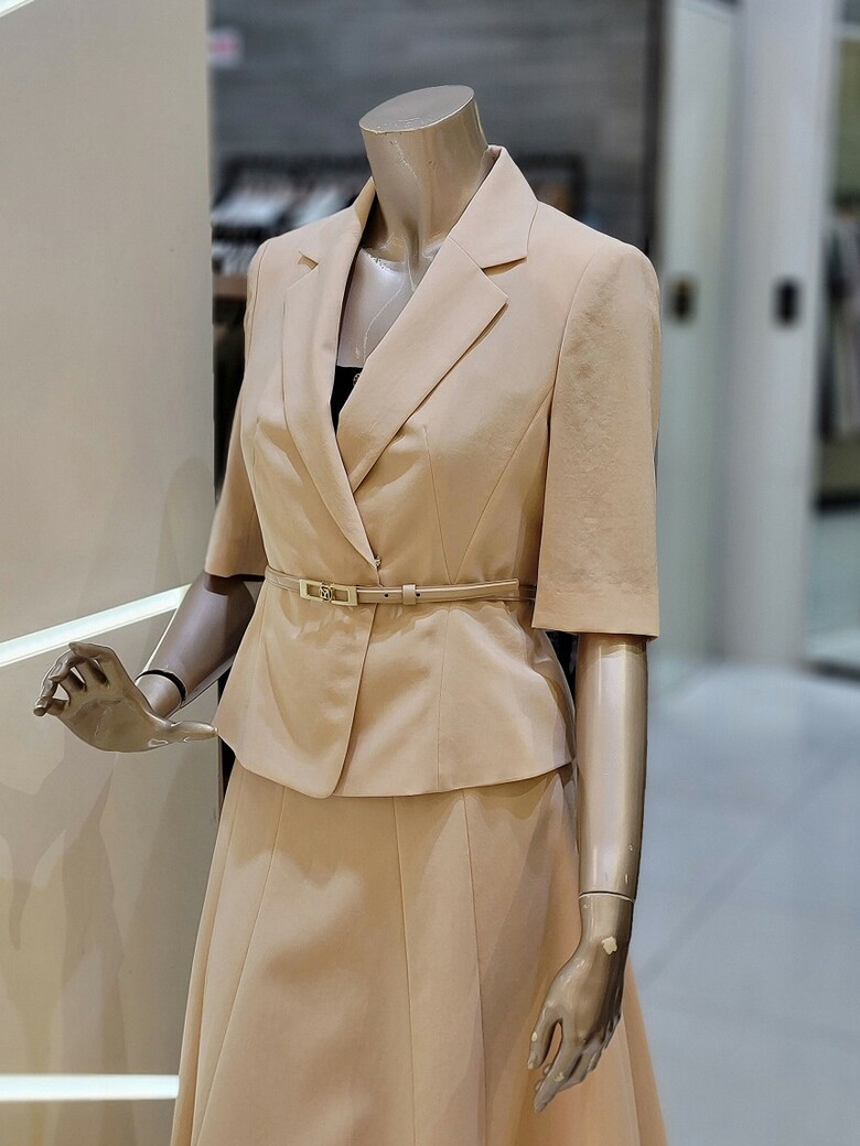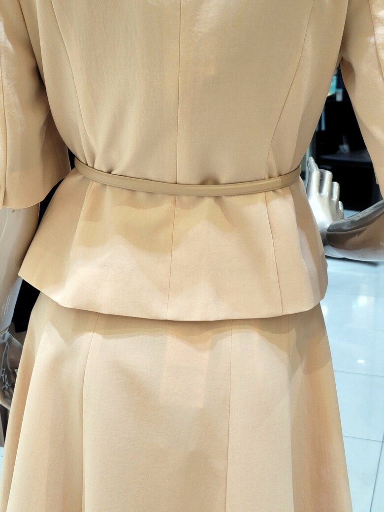웨스트 페플럼 디자인이 여성스러운 분위기를 연출하며