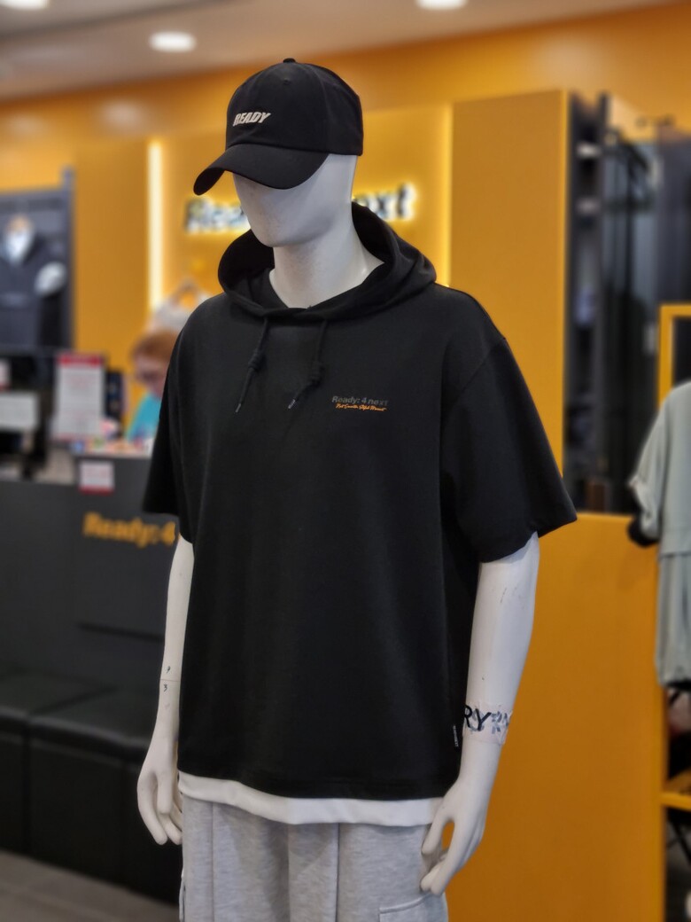 레이어드 후드 반팔 티셔츠 입니다