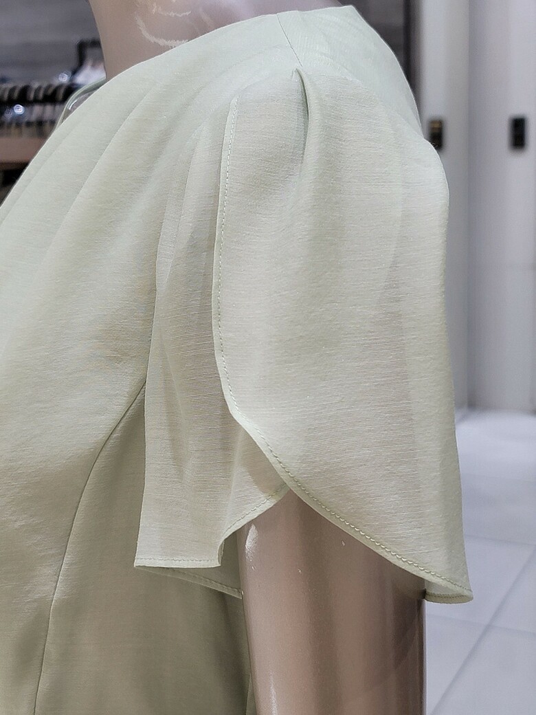 브이넥 라인에 볼륨감 있는 하프 슬리브와