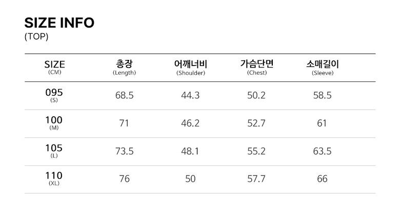| 3. 치수 | S(95),M(100),L(105),XL(110) |