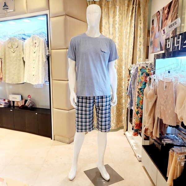 VEV3910M VEP3910M_쿨 솔리드상의 주름체크바지 홈웨어세트