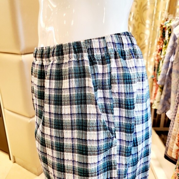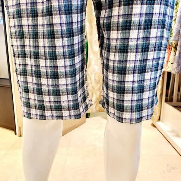 주름지 선염체크 반바지로 시원하고 찰랑거리는 느낌이 좋으며 구김이 없어 관리가 편리합니다.