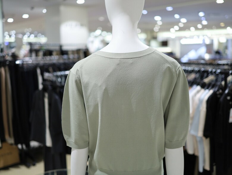 쇄골을 드러내는 깊은 브이넥 디자인과
