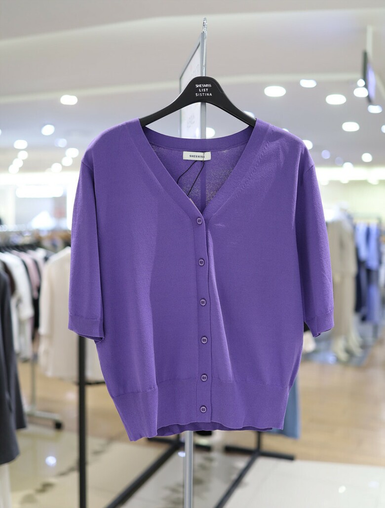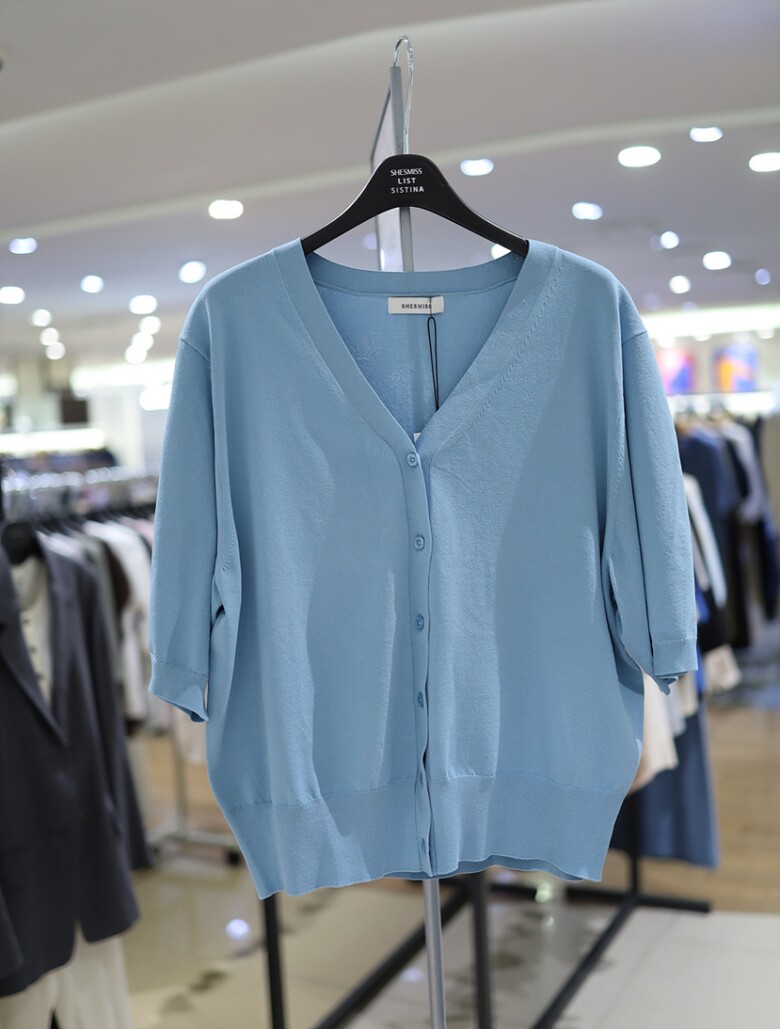 쉬즈미스 미니멀 브이넥 반팔 가디건 SSKCDO22050