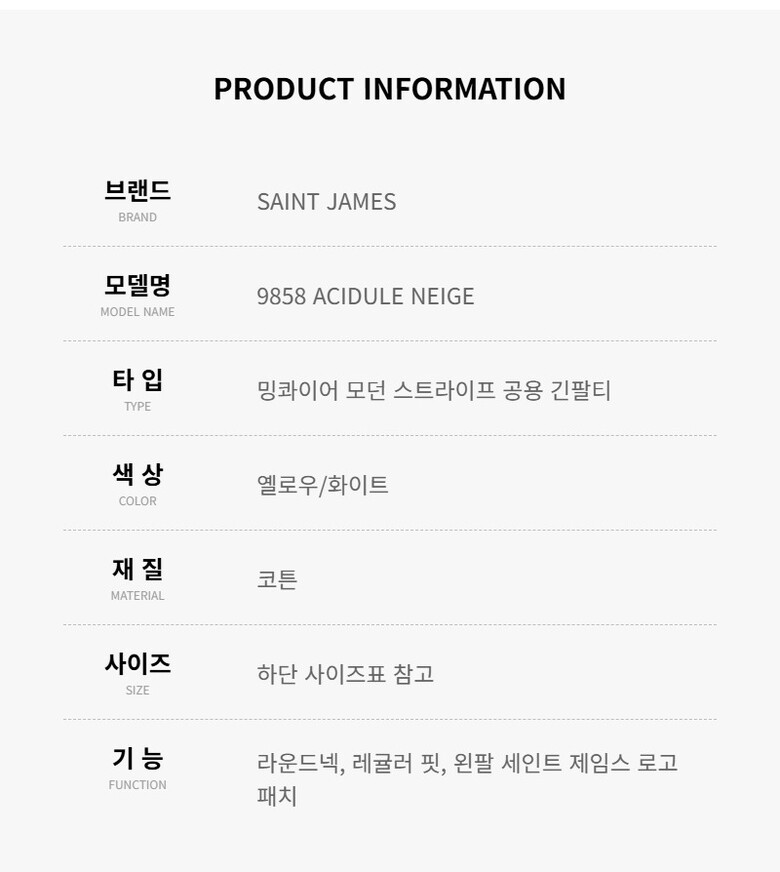 세인트제임스 긴팔 9858 ACIDULE NEIGE 밍콰이어 모던 스트라이프 남성긴팔티 여성긴팔티 당일발송