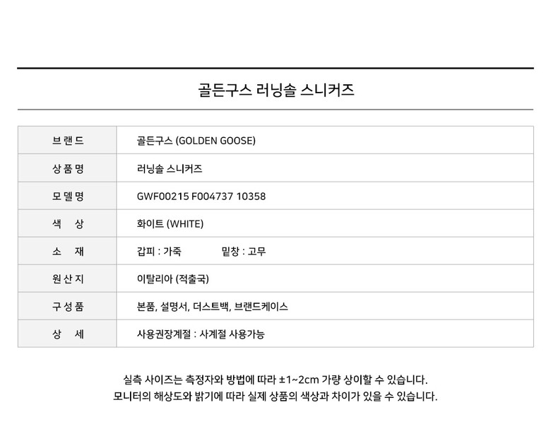 - #리본즈코리아 #GWF00215F00473710358 #[명품] #골든구스 #러닝솔 #스니커즈 #화이트 #GWF00215 #F004737 #10358 #여성 #슈즈 #로우탑스니커즈