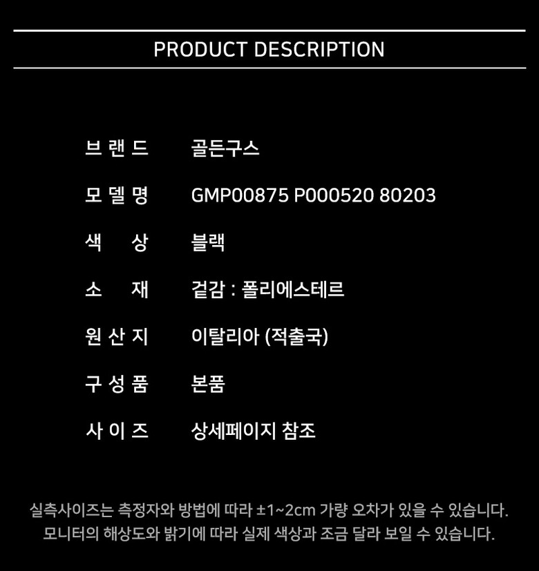 | 1. 제품 소재 (섬유의 조성 또는 혼용률을 백분율로 표시, 기능성인 경우 성적서 또는 허가서) | 상세페이지 참조 |