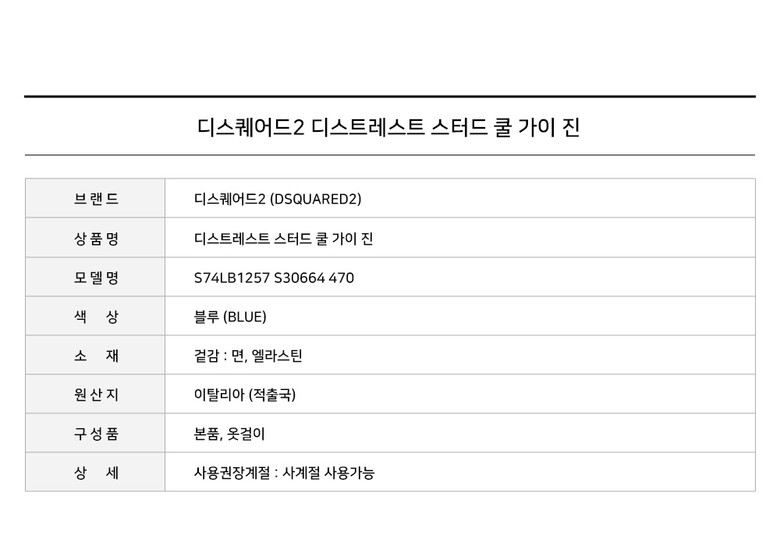 [명품] 디스퀘어드2 디스트레스트 스터드 쿨 가이 진 블루 S74LB1257 S30664 470