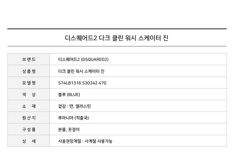 - #리본즈코리아 #S74LB1316S30342470 #[명품] #25SS #디스퀘어드2 #다크 #클린 #워시 #스케이터 #진 #블루 #S74LB1316 #S30342 #470 #남성 #의류 #하의 #청바지
