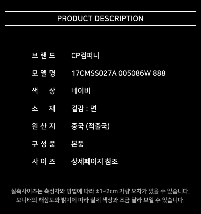 | 1. 제품 소재 (섬유의 조성 또는 혼용률을 백분율로 표시, 기능성인 경우 성적서 또는 허가서) | 상세페이지 참조 |