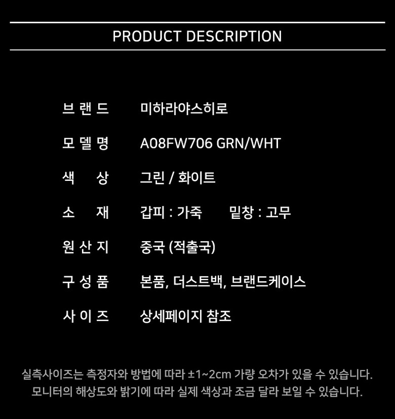 [명품] 25SS 미하라야스히로 웨인 레더 스니커즈 A08FW706 GRN WHT