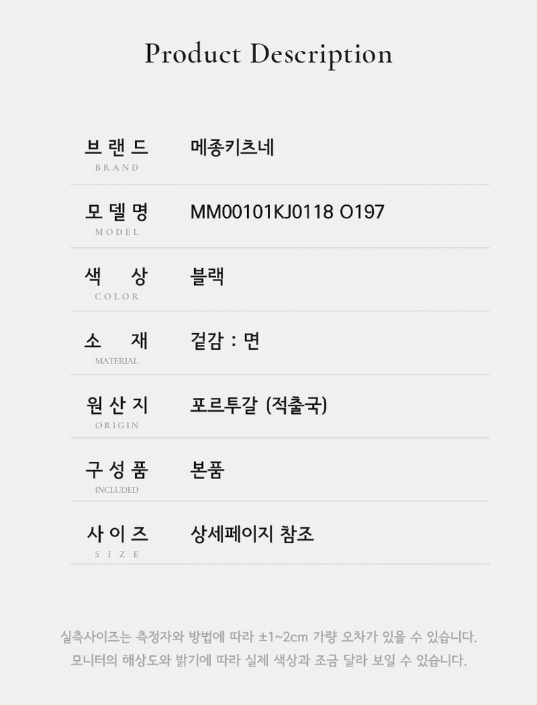 • 아울렛 상품의 특성 상 “택이 훼손”된 경우가 있으나 이는 불량이 아니며 무료 반품 대상 상품이 아닙니다.