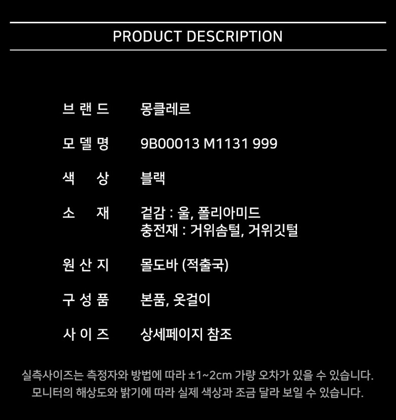 | 1. 제품 소재 (섬유의 조성 또는 혼용률을 백분율로 표시, 기능성인 경우 성적서 또는 허가서) | 상세페이지 참조 |