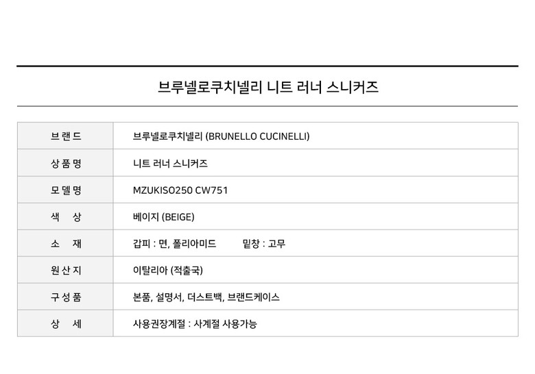 [명품] 브루넬로쿠치넬리 니트 러너 스니커즈 베이지 MZUKISO250 CW751