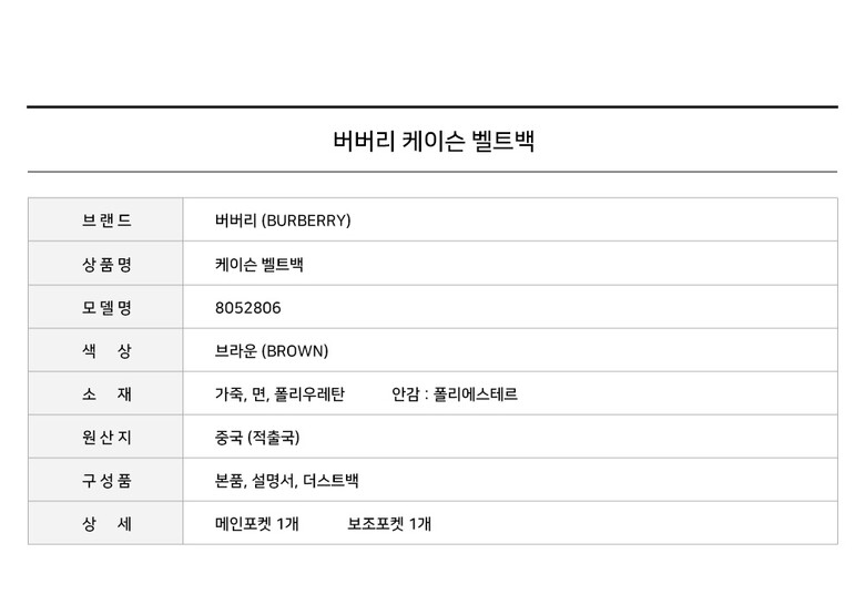 [명품] 버버리 케이슨 벨트백 브라운 8052806