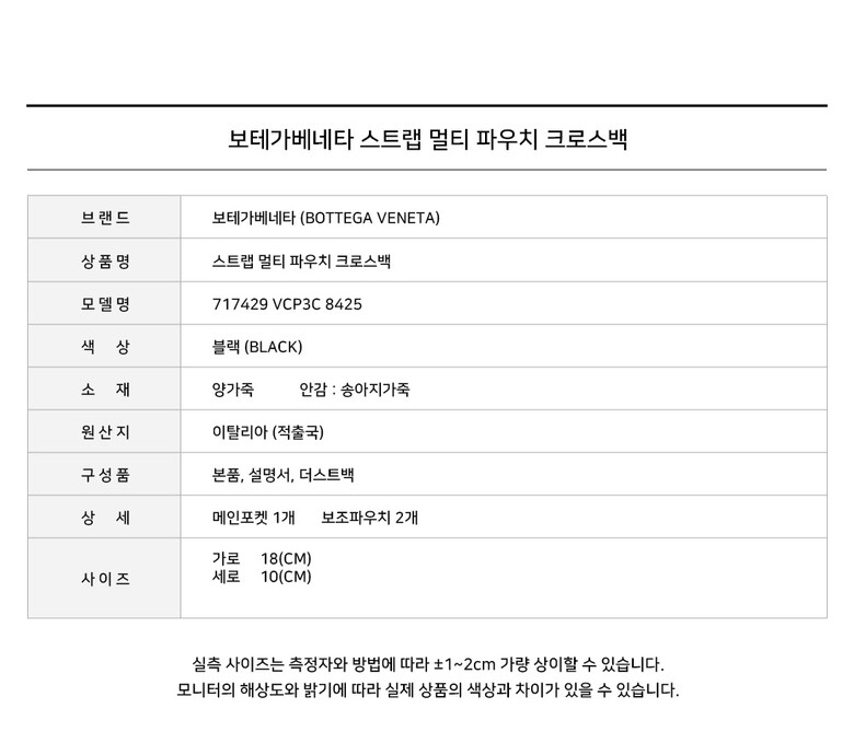 - #리본즈코리아 #717429VCP3C8425 #[명품] #보테가베네타 #스트랩 #멀티 #파우치 #크로스백 #블랙 #717429 #VCP3C #8425 #여성 #가방/핸드백 #크로스/메신저백