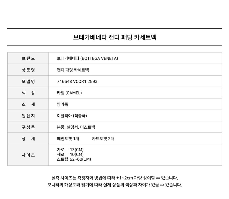 - #리본즈코리아 #716648VCQR12593 #[명품] #보테가베네타 #캔디 #패딩 #카세트백 #카멜 #716648 #VC #1 #2593 #여성 #가방/핸드백 #크로스/메신저백 #크로스백