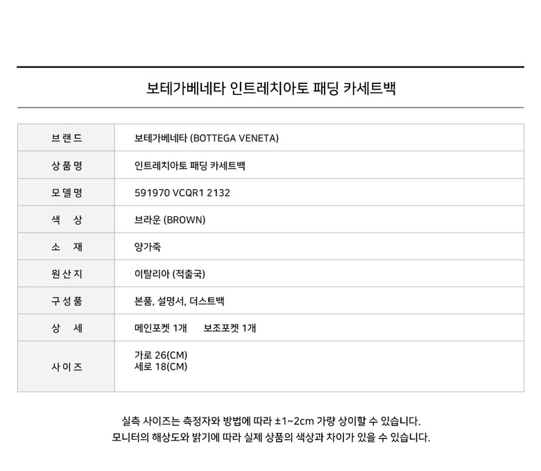 - #리본즈코리아 #591970VCQR12132 #[명품] #보테가베네타 #패딩 #카세트백 #브라운 #591970 #VC #1 #2132 #여성 #가방/핸드백 #크로스/메신저백 #크로스백