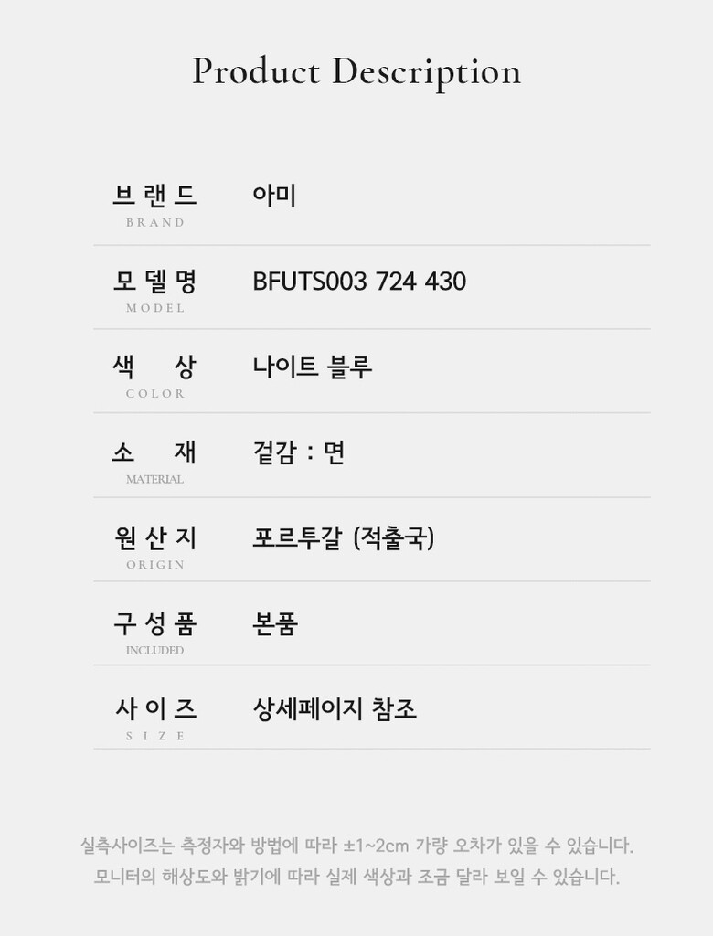 | 1. 제품 소재 (섬유의 조성 또는 혼용률을 백분율로 표시, 기능성인 경우 성적서 또는 허가서) | 상세페이지 참조 |