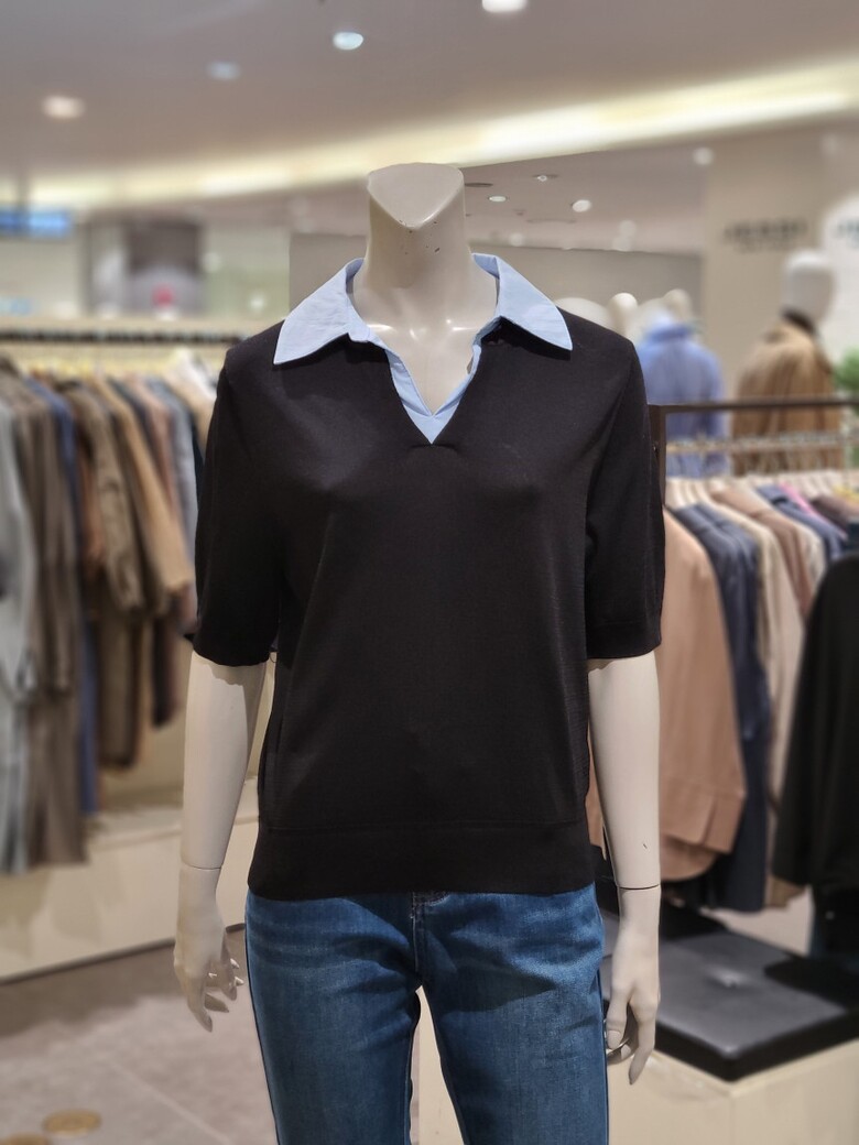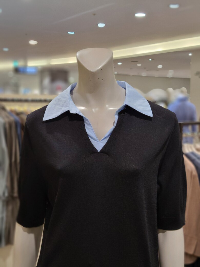 소고 카라넥5부소매 니트티셔츠AK2TA17