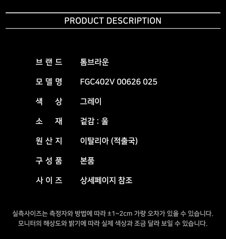 | 6. 세탁방법 및 취급시 주의사항 | 상품상세 참조 |