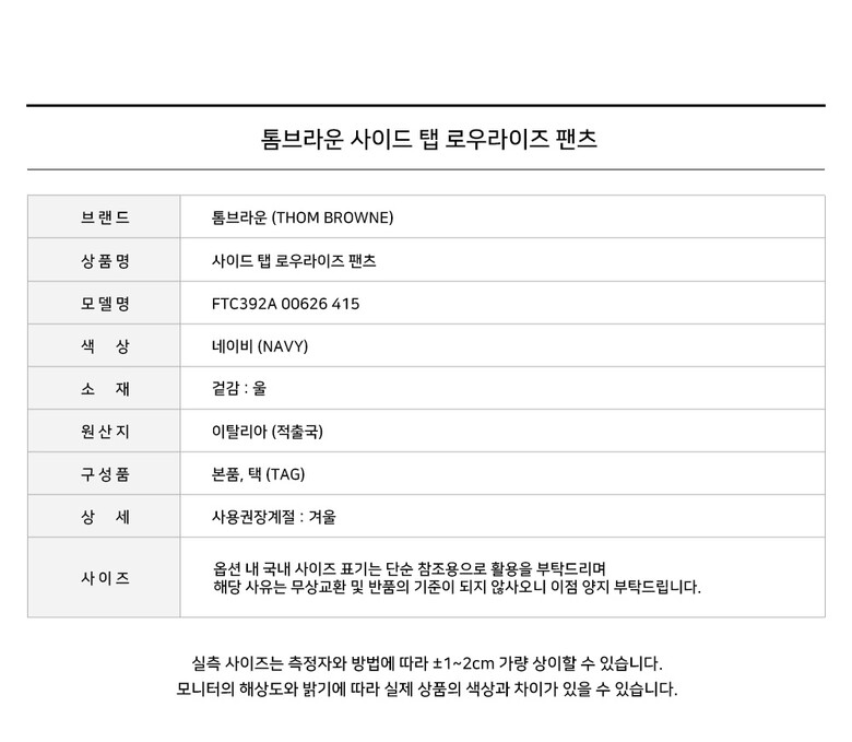 #리본즈코리아 #FTC392A00626415 #[명품] #톰브라운 #사이드 #탭 #로우라이즈 #팬츠 #네이비 #FTC392A #00626 #415 #여성 #의류 #하의 #면바지