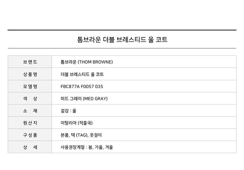 - #리본즈코리아 #FBC877AF0057035 #[명품] #톰브라운 #더블 #브레스티드 #울 #코트 #미드그레이 #FBC877A #F0057 #035 #여성 #의류 #아우터 #겨울코트