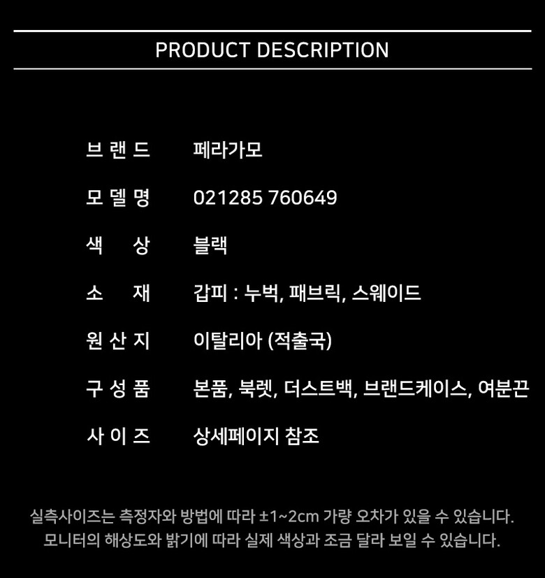 | 3. 치수 | 상세페이지 참조 |
