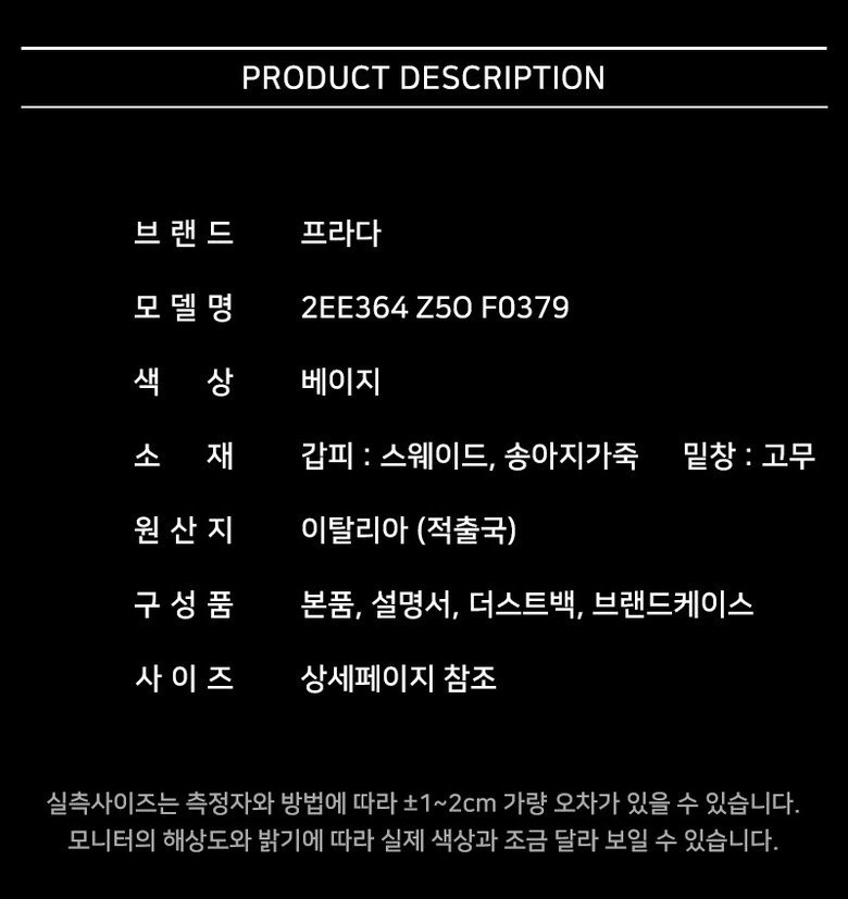 | 1. 제품 소재 (운동화인 경우에는 겉감, 안감을 구분하여 표시) | 상세페이지 참조 |