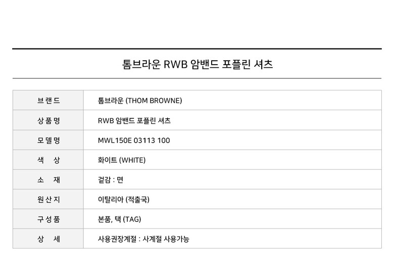 #리본즈코리아 #MWL150E03113100 #[명품] #톰브라운 #RWB #포플린 #셔츠 #화이트 #MWL150E #03113 #100 #남성 #의류 #블라우스/셔츠 #캐주얼셔츠