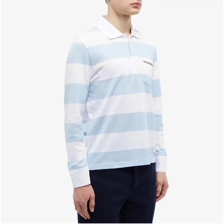 [명품] 톰브라운 럭비 스트라이프 폴로 티셔츠 라이트블루 MJP167A J0049 452