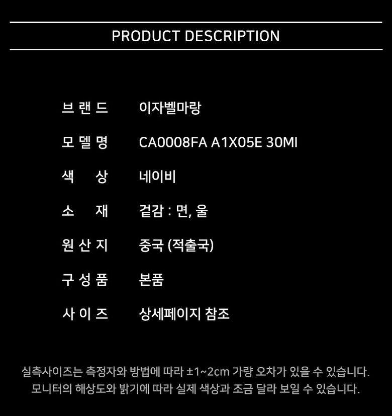 | 6. 세탁방법 및 취급시 주의사항 | 상품상세 참조 |