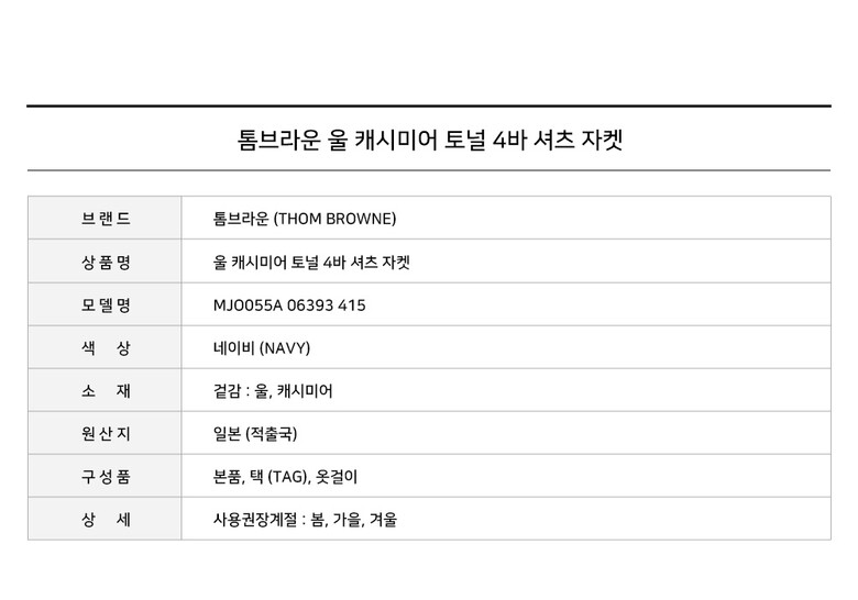 - #리본즈코리아 #MJO055A06393415 #[명품] #톰브라운 #울 #캐시미어 #토널 #4바 #셔츠 #자켓 #네이비 #MJO055A #06393 #415 #남성 #의류 #아우터 #캐주얼자켓
