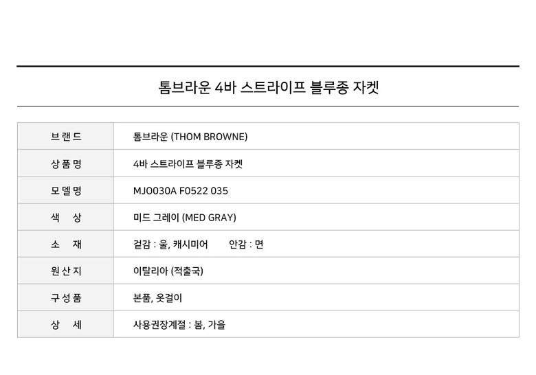 - #리본즈코리아 #MJO030AF0522035 #[명품] #톰브라운 #4바 #스트라이프 #블루종 #자켓 #미드그레이 #MJO030A #F0522 #035 #남성 #의류 #아우터 #캐주얼자켓