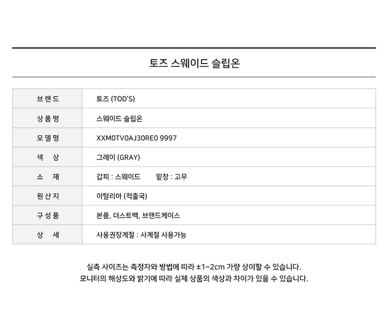 [명품] 토즈 스웨이드 슬립온 그레이 XXM0TV0AJ30RE0 9997