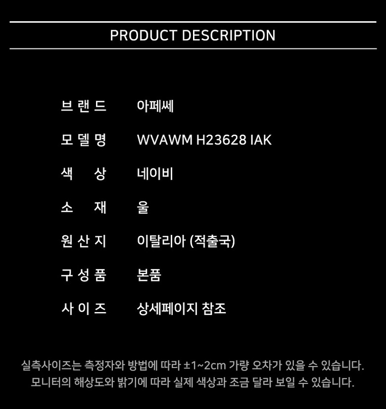 [명품] 아페쎄 킹 메리노울 니트 네이비 WVAWM H23628 IAK