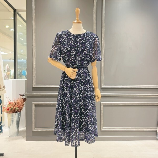 A55WOP500_잔 무늬 반팔 쉬폰 원피스