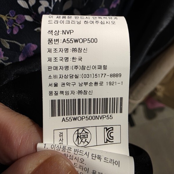 제조자 : (주)참신어패럴