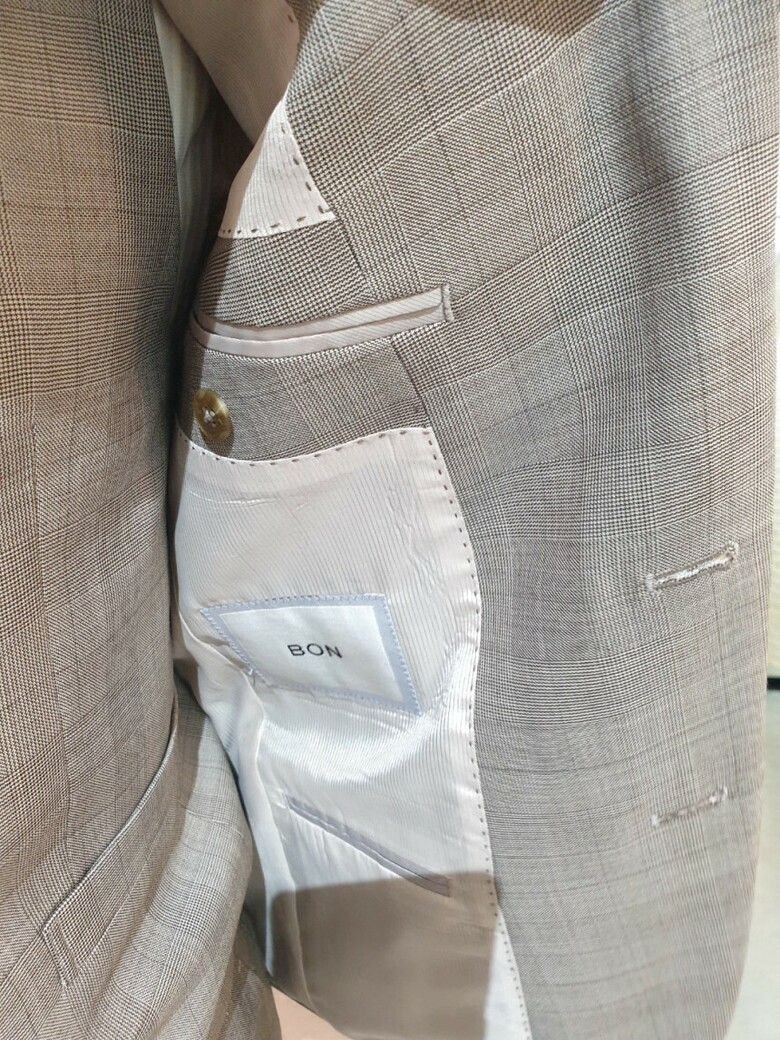 BON 24SS 베이지 울100%이태리 직수입 알비노 또렐로 글렌체크 슬림정장BN4MJA084BE