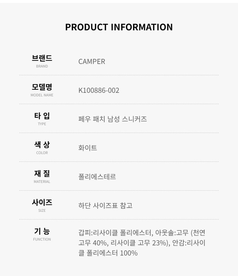| 4. 제조사 | 캠퍼/(주)언커먼레이블-병행수입 |