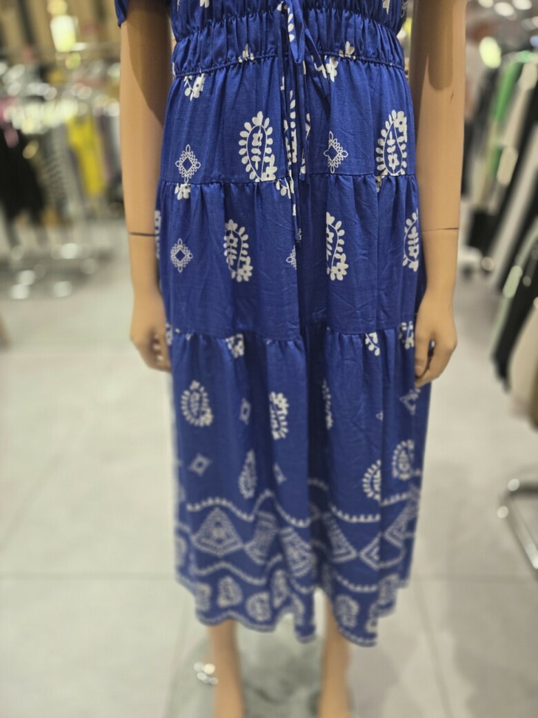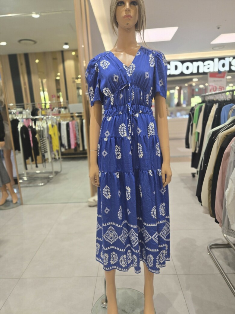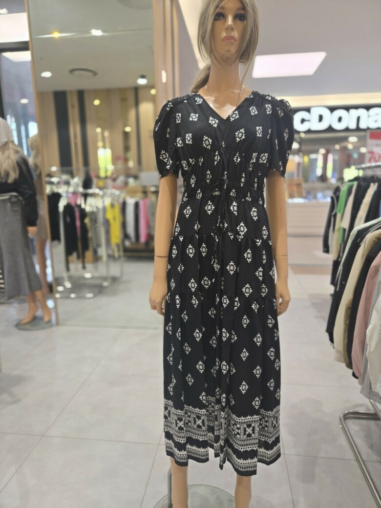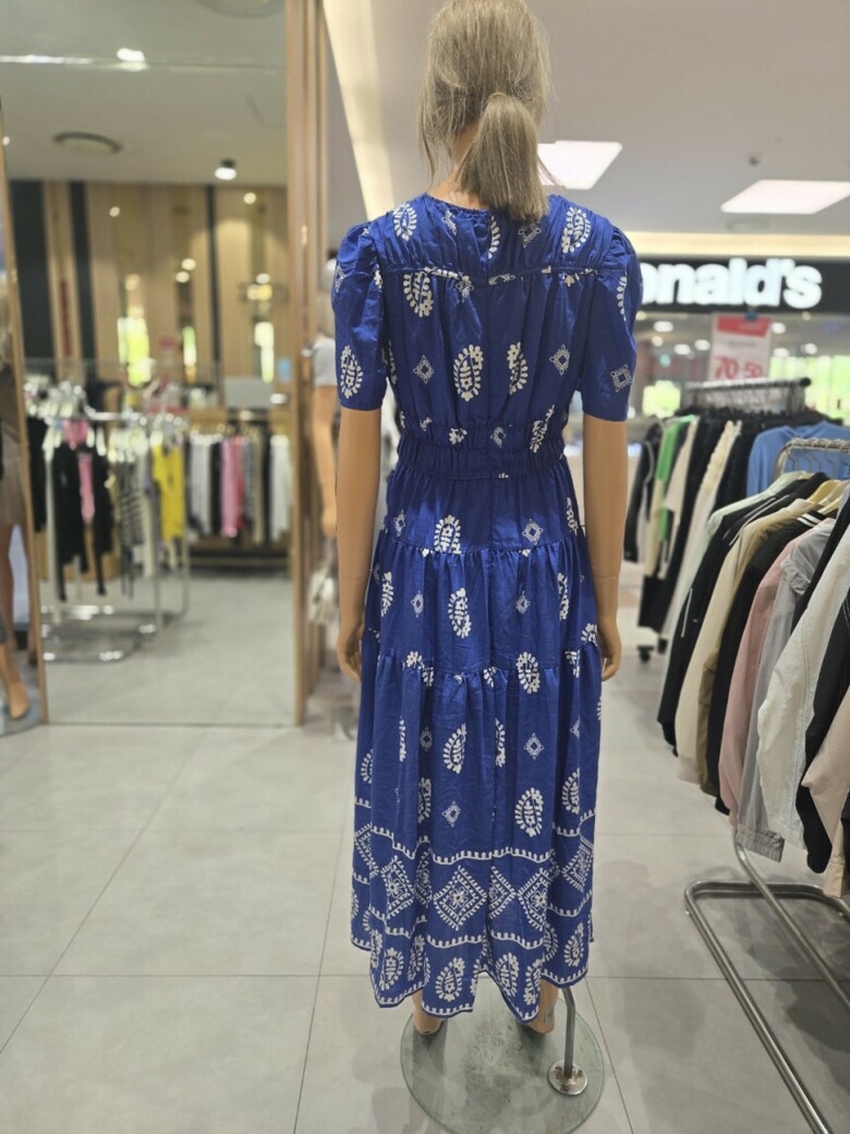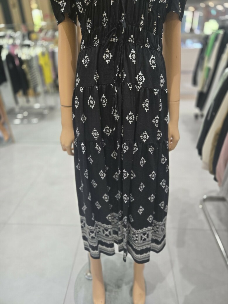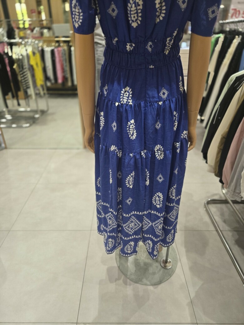 웨이스트 밴딩 프린트 롱 원피스 ER2JO-500