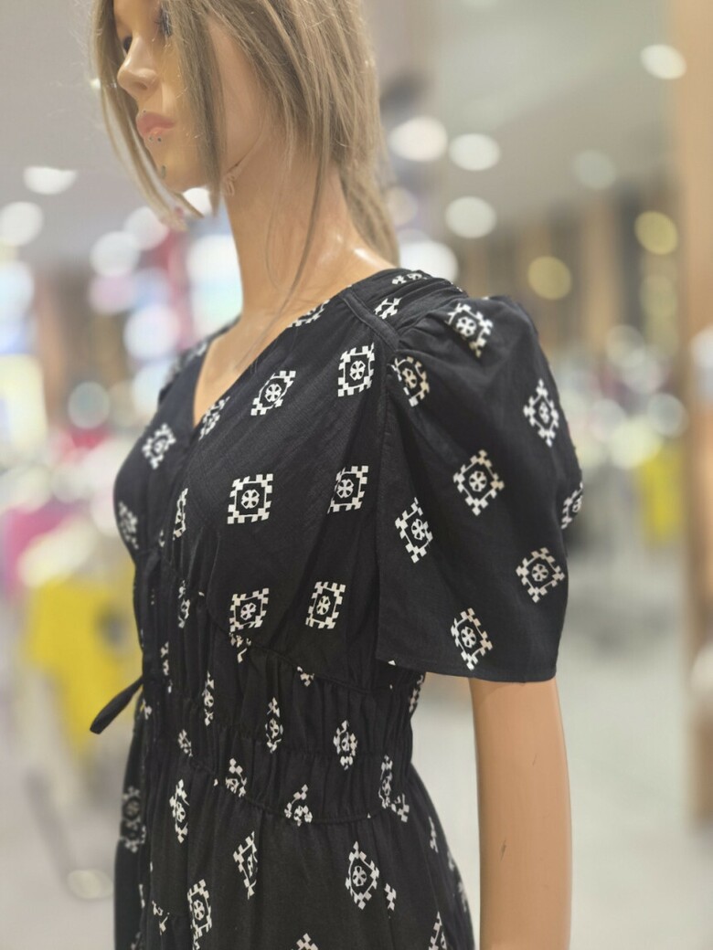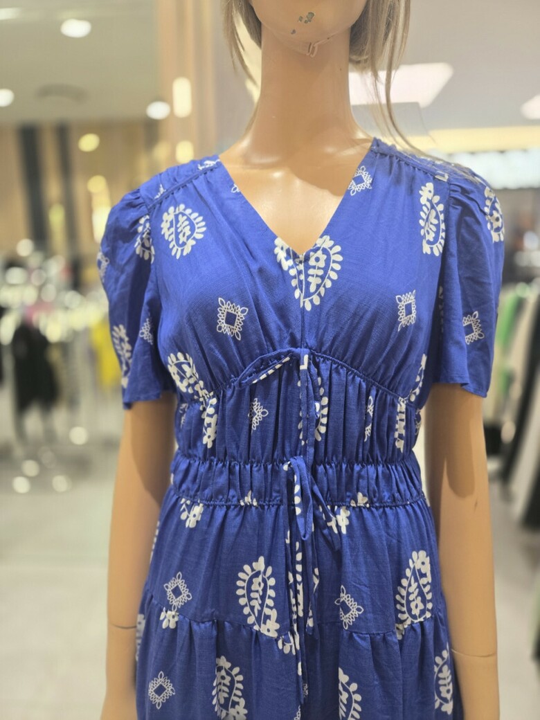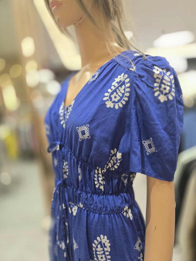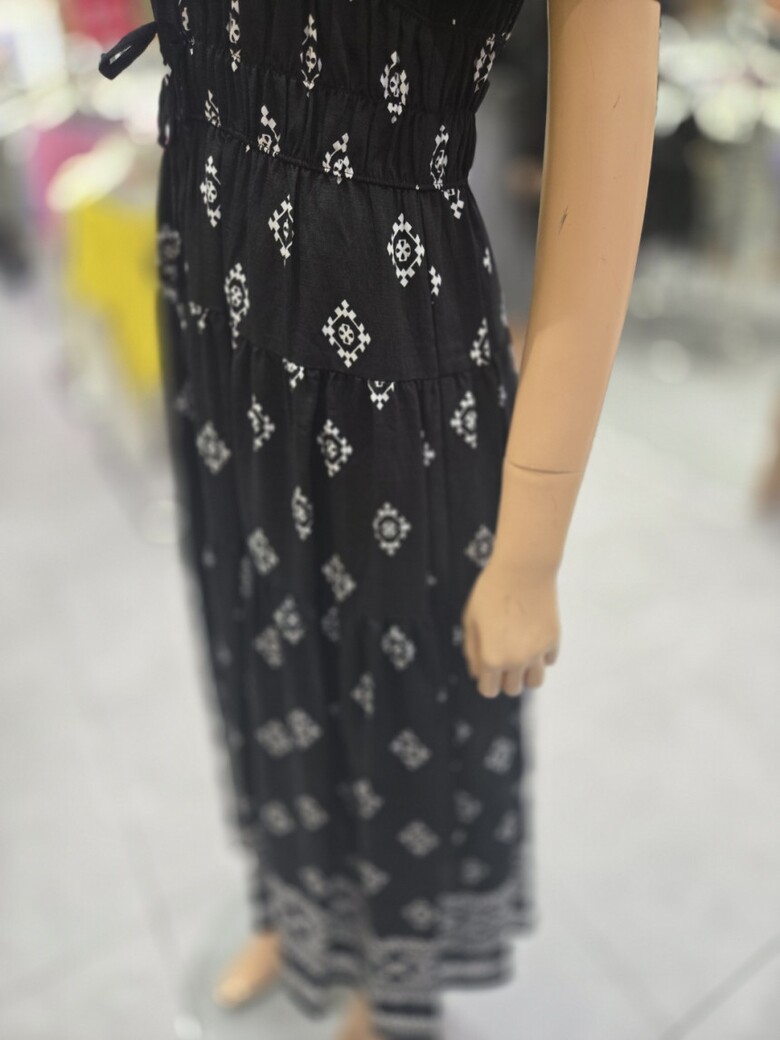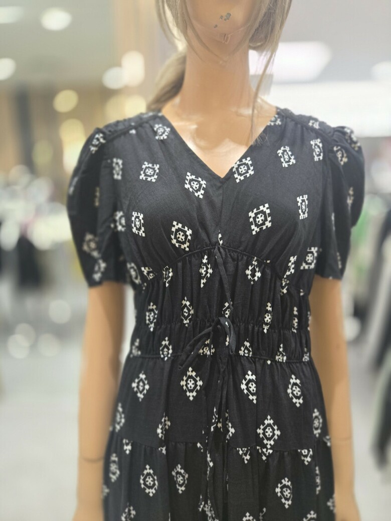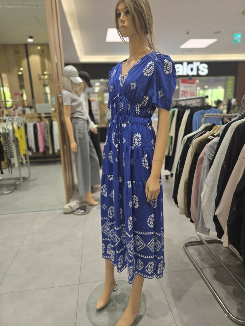 웨이스트 밴딩 프린트 롱 원피스 ER2JO-500